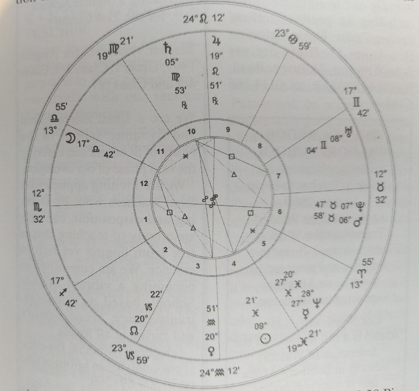 ii. I have cast the chart for Steiner, for his birth at Kraljevec, 27 February, 1861, preserving a Scorpionic Ascendant. I am aware that there is some dispute as to the precise moment of birth, but the data I give would be accurate to within a minute or two throughout the entire day, and such differences do not in any way call into question the findings I set out above.